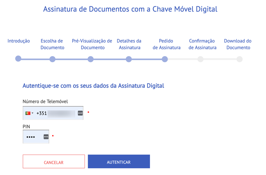 Proceda à autenticação através da Chave Móvel digital indicando o seu número de telemóvel.